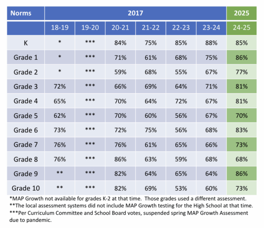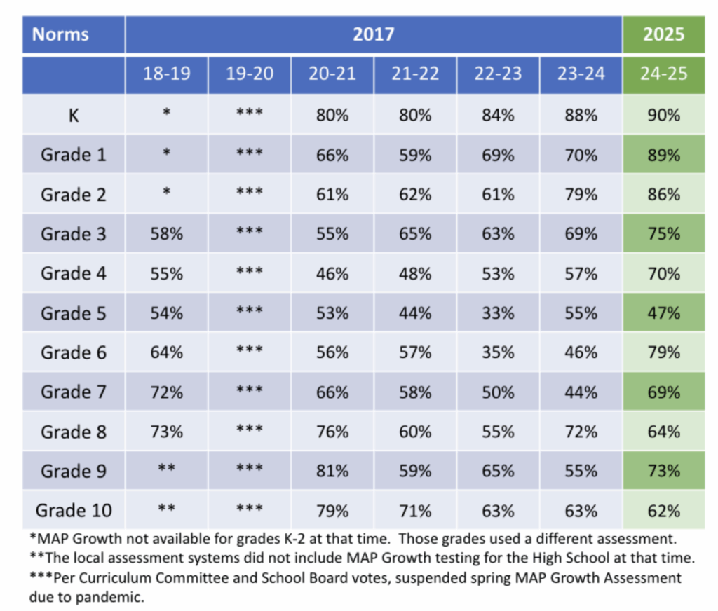 The ESSA School Data Dashboard includes “criterion referenced data”, which means it compares how students perform on an annual standardized test compared to a score identified as meeting “state expectations”. The MSAD 15 Supplemental Data Dashboard provides primarily “norms referenced data”, which means it compares how students perform on an annual standardized test compared to the average of all students across the United States.