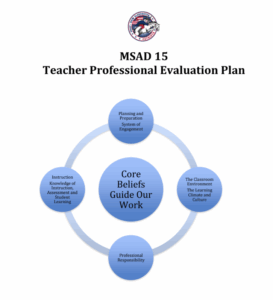 MSAD 15’s Performance Evaluation and Professional Growth (PEPG) system outlines the district’s implementation of Maine statutes governing how we support teacher growth and measure teacher effectiveness. This plan applies to all staff employed within the teacher collective bargaining unit. More information about the State of Maine’s and Maine Department of Education’s requirements and guidance on educator evaluation and growth can be found here.