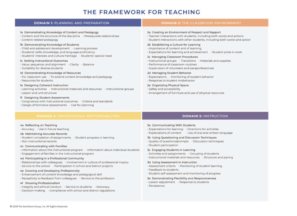 Teachers in MSAD 15 are evaluated using the Danielson Framework for Teaching, a nationally recognized, research-based model designed to promote effective instructional practice. The Danielson model outlines clear expectations across four key domains, planning and preparation, classroom environment, instruction, and professional responsibilities. By using this framework, MSAD 15 ensures that teacher evaluation is consistent, fair, and focused on professional growth, ultimately supporting high-quality teaching and learning for all students.