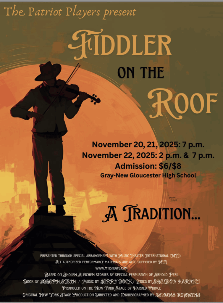 Patriot Players Present Fiddler on the Roof -November 20th, 21st & 22nd By wpadmin|2025-10-28T10:42:17-04:00October 28th, 2025|GNGHS News|Comments Off on Patriot Players Present Fiddler on the Roof -November 20th, 21st & 22nd Share This Story, Choose Your Platform! FacebookXLinkedInPinterestEmail
