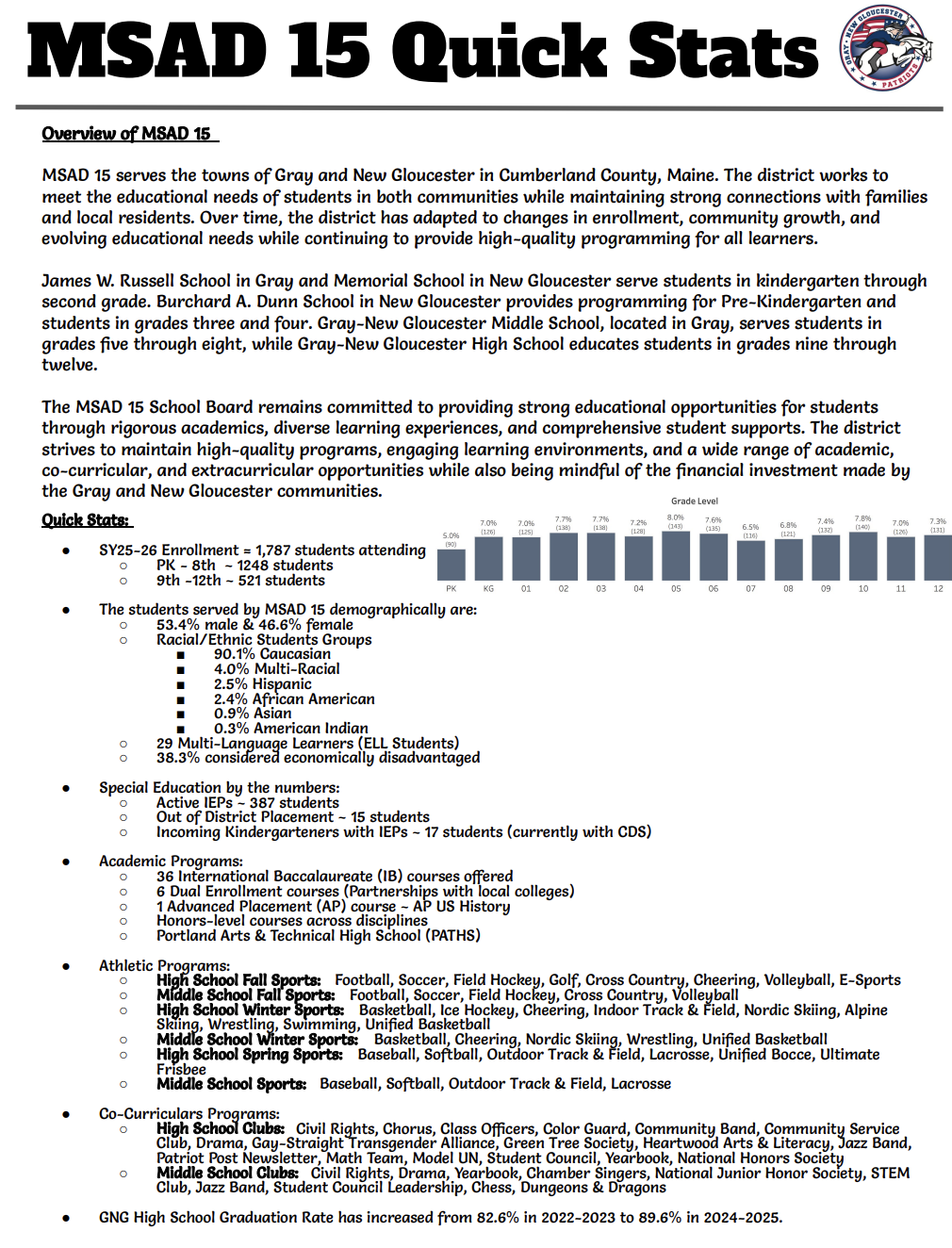 ● we have continuously improved the image and standing of MSAD 15 in our own communities